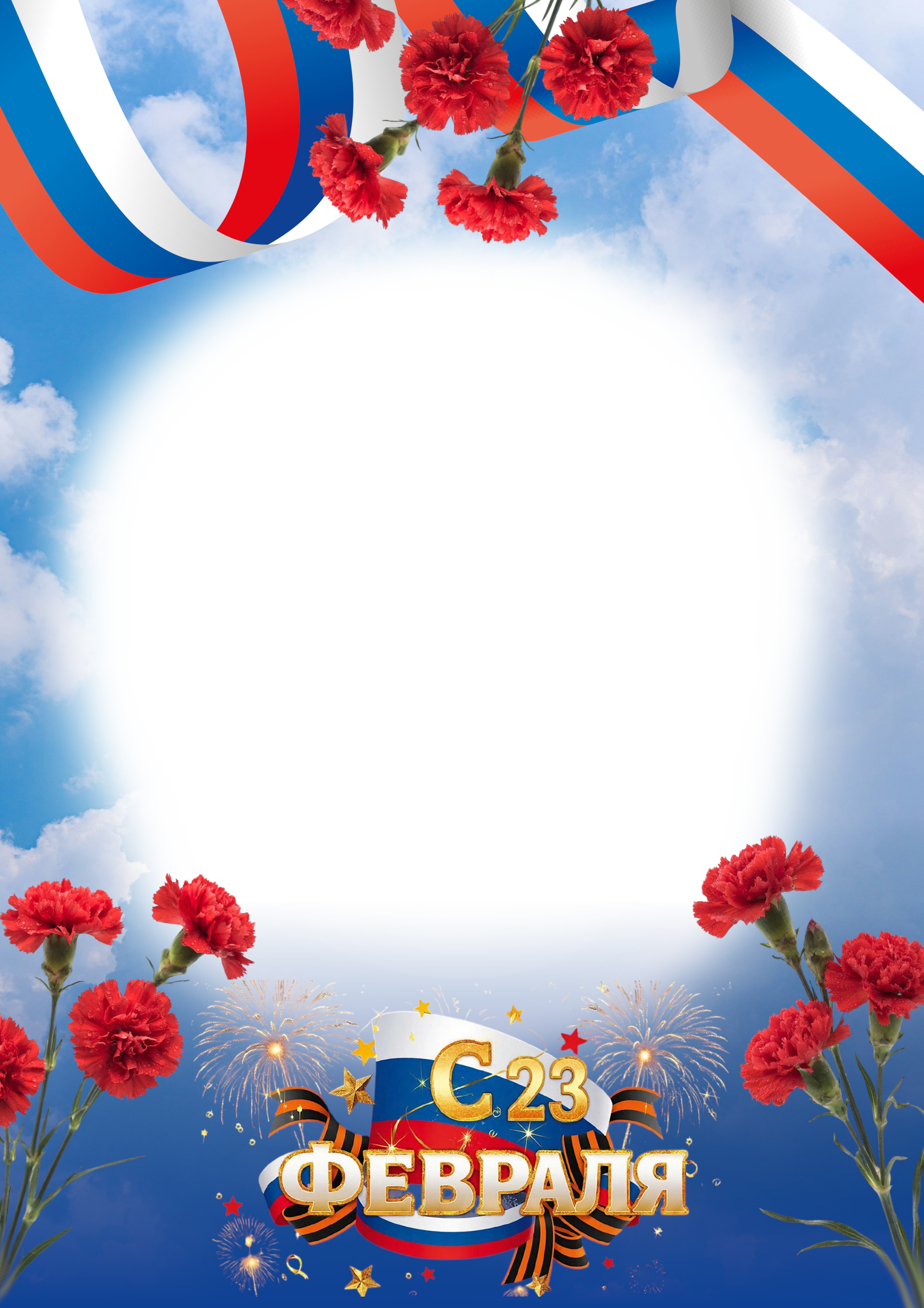 Фоторамка на 23 февраля с лентами и цветами