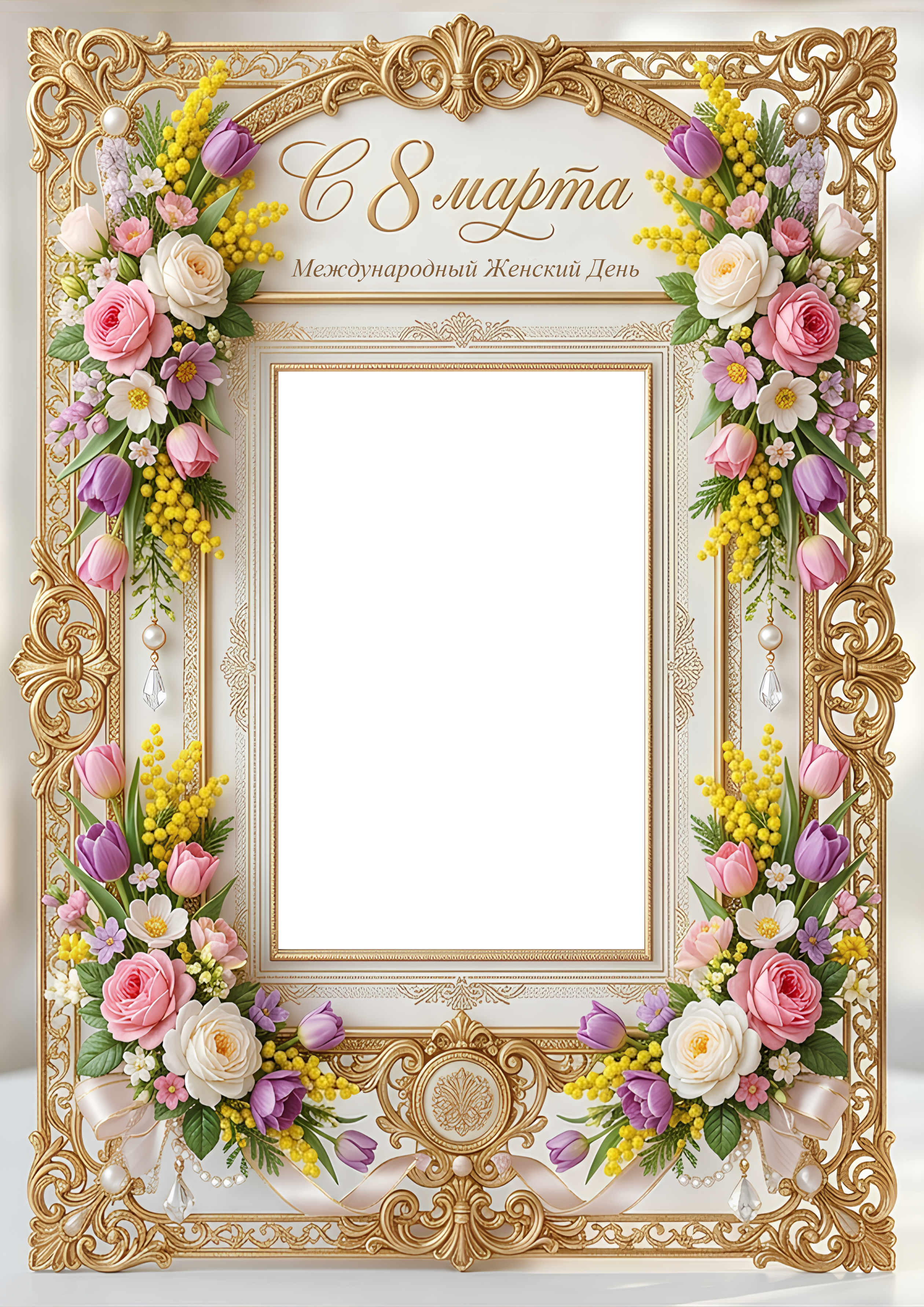 Фоторамка на 8 марта с цветами ажурная