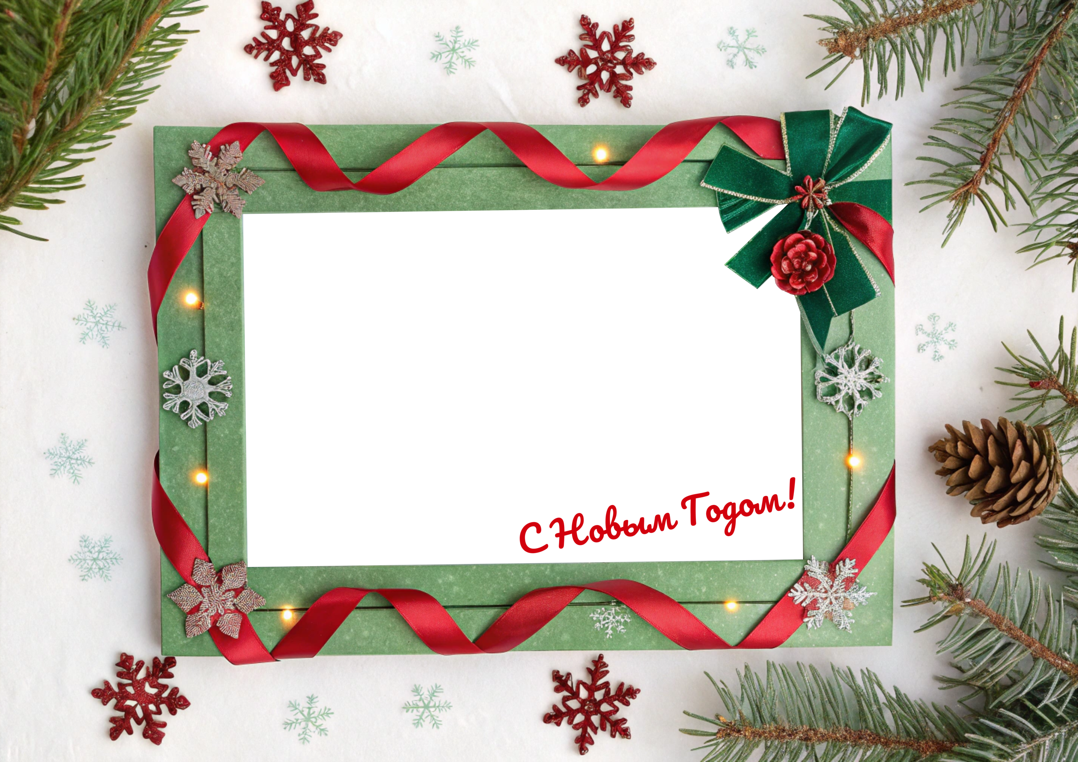 Создайте коллаж с вашей фотографией в новогодней рамке. Загружайте фото и скачивайте в одном из размеров — для интернета или для печати. Можно распечатать до формата А4 при разрешении 300dpi или до А3 при 150dpi.