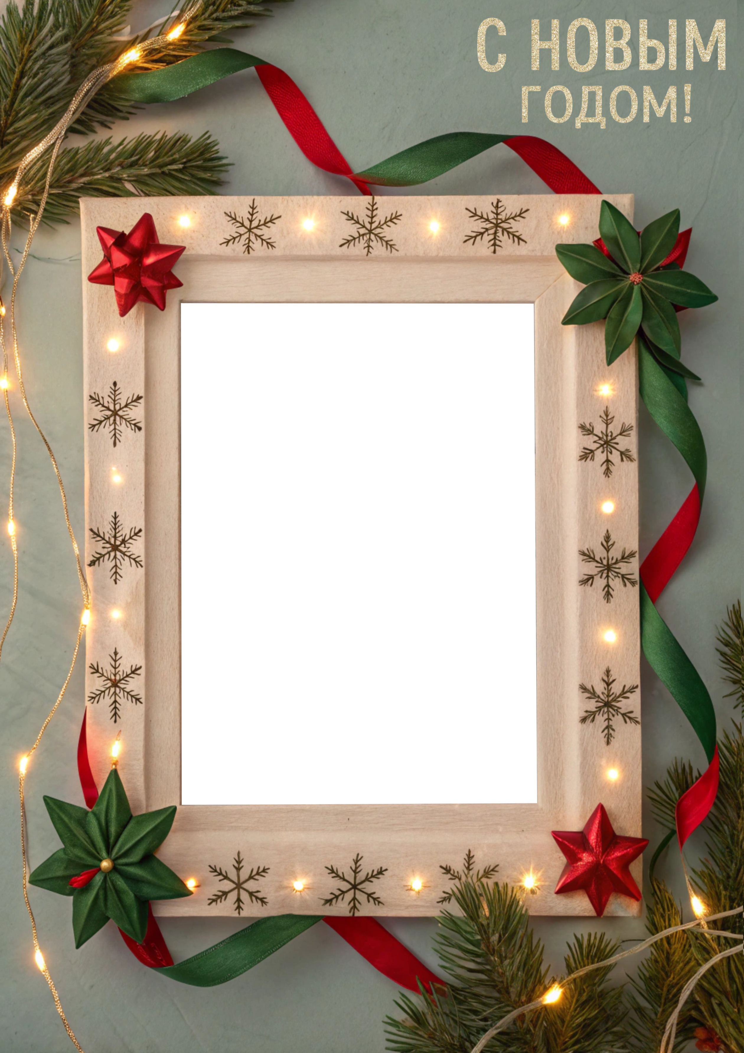 Создайте коллаж с вашей фотографией в новогодней рамке. Загружайте фото и скачивайте в одном из размеров — для интернета или для печати. Можно распечатать до формата А4 при разрешении 300dpi или до А3 при 150dpi.